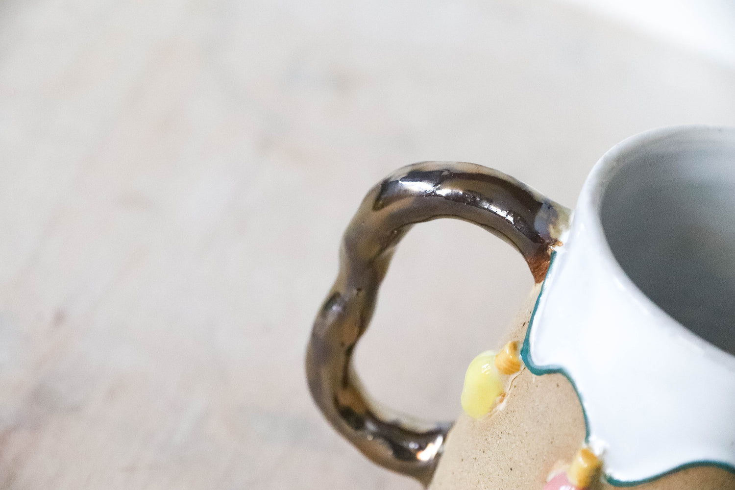 Some of the stoneware mugs have sharp edges so please be careful handling them. There are also some with real gold lustre and other metals and cannot go in the microwave. Any lids are intended for decorative use only and I recommend fixing them down for display with some kind of sticky white tac.