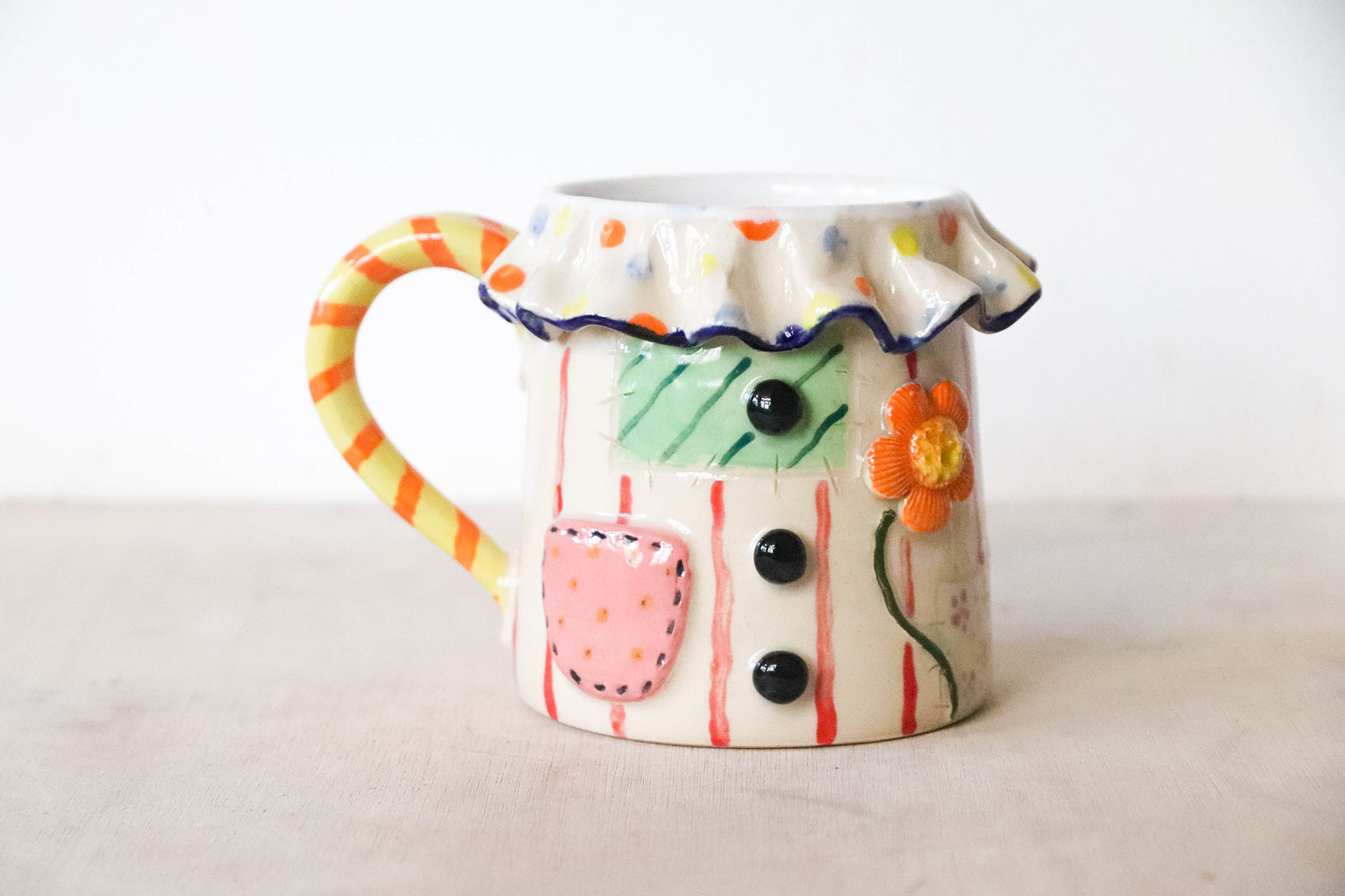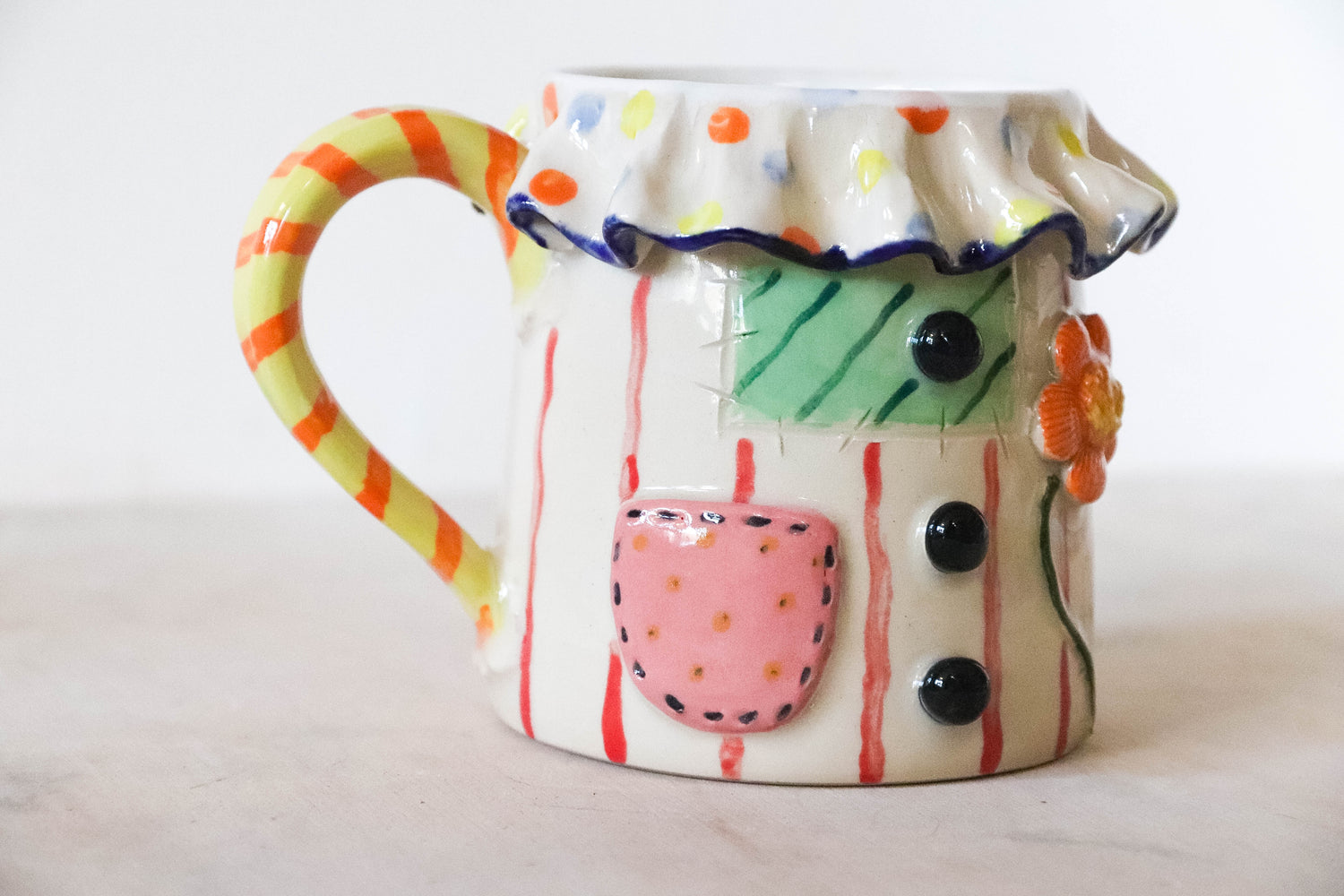 Stoneware mug made and painted by hand in my studio in East Sussex