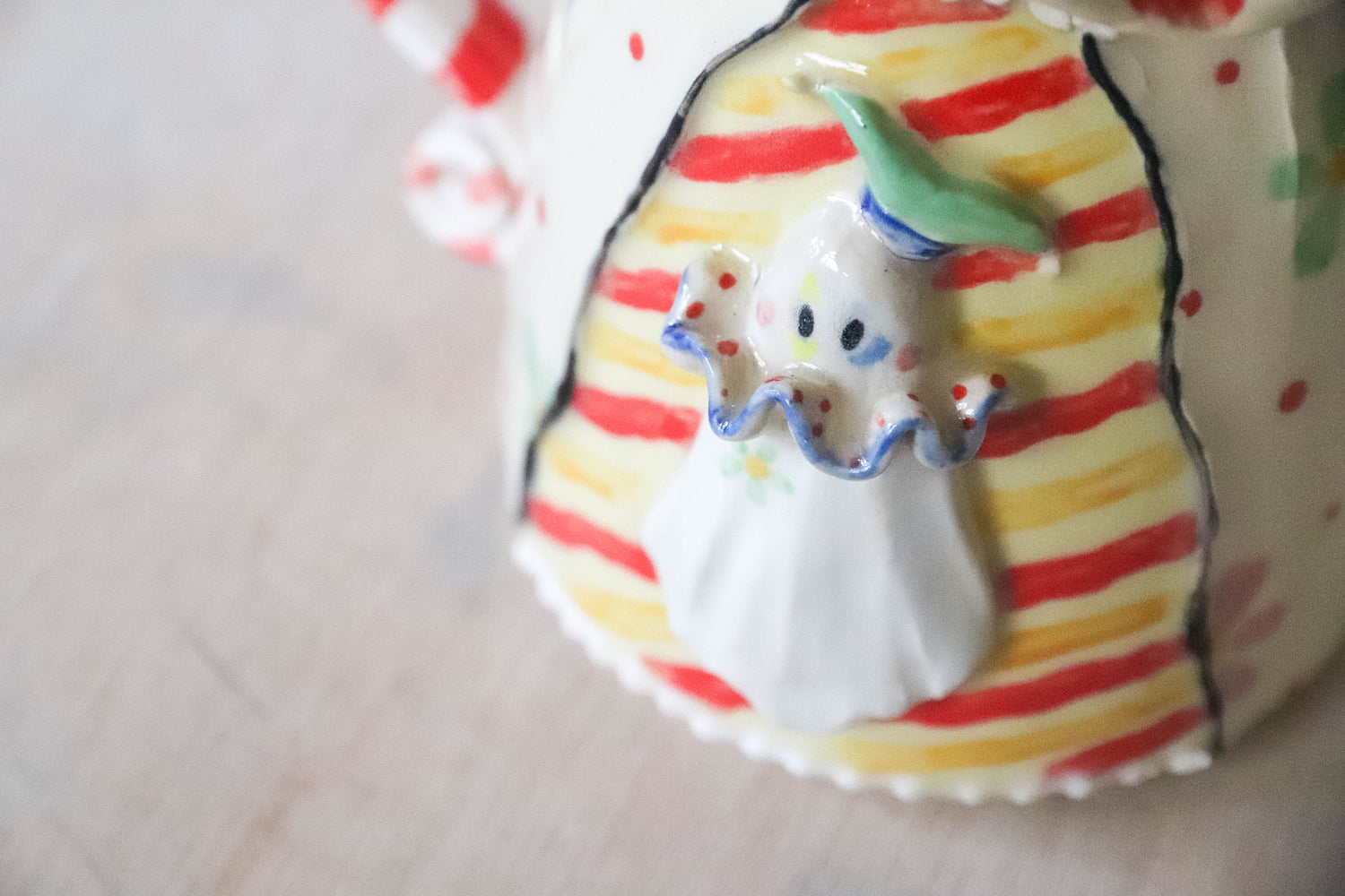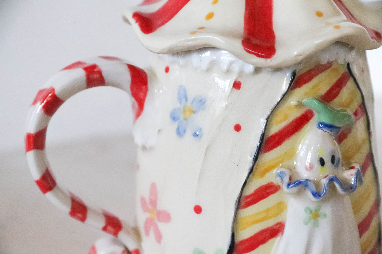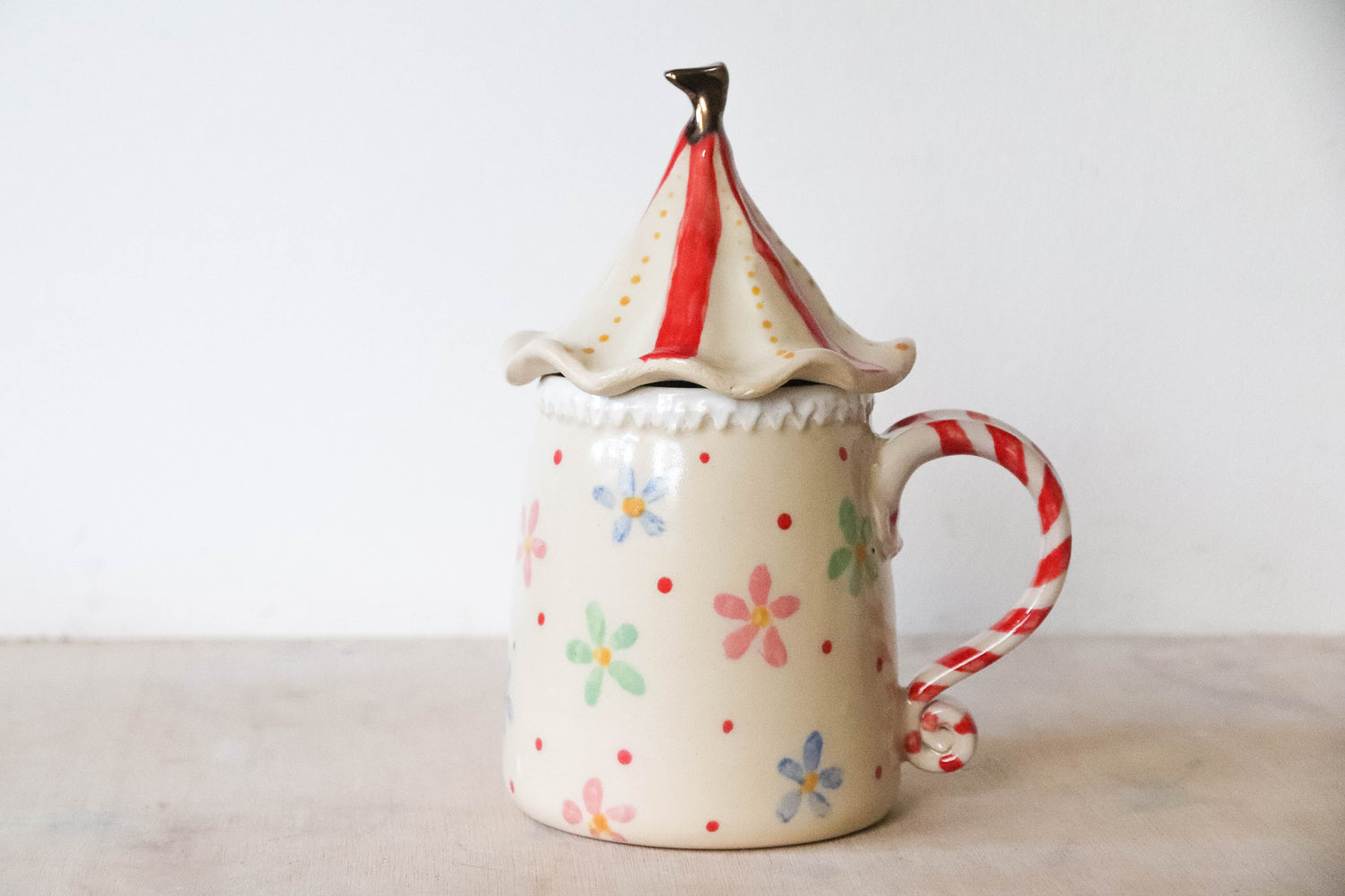 Some of the stoneware mugs have sharp edges so please be careful handling them. There are also some with real gold lustre and other metals and cannot go in the microwave. Any lids are intended for decorative use only and I recommend fixing them down for display with some kind of sticky white tac.