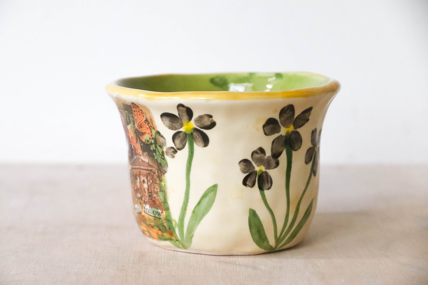 Handmade Earthenware painted by me in my studio in East Sussex. Not dishwasher safe but fine in the microwave